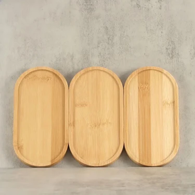 – Modern tasarımıyla dikkat çeken oval şekilli bambu sunum tepsisi, mutfak dekorasyonunuza şık bir dokunuş ekler.;